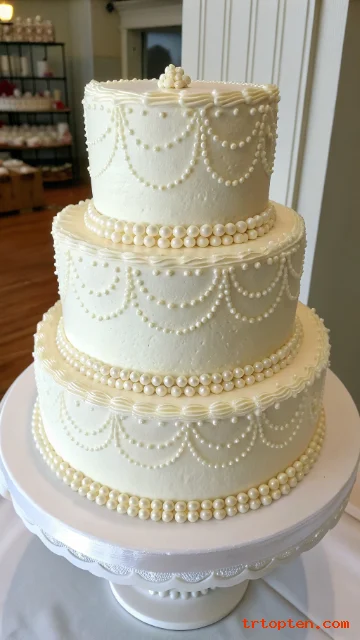 White Cake With Delicate Pearl Piping