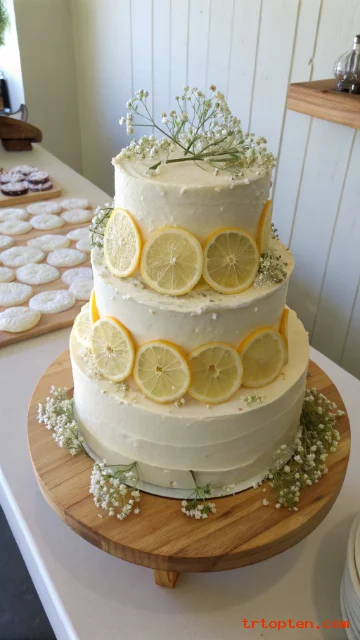 Pick lemon cake with vanilla buttercream for a clear flavor match. This style suits spring and summer weddings.