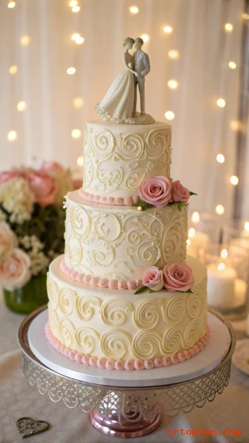 Pick lemon cake with vanilla buttercream for a clear flavor match. This style suits spring and summer weddings.