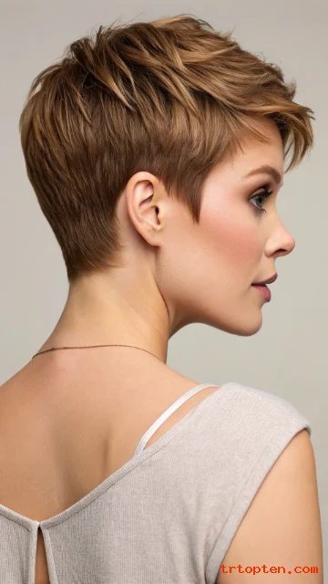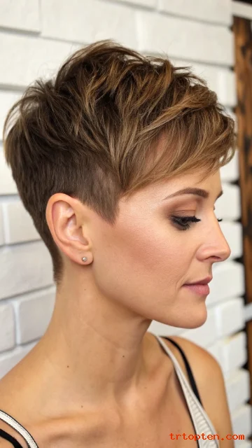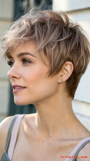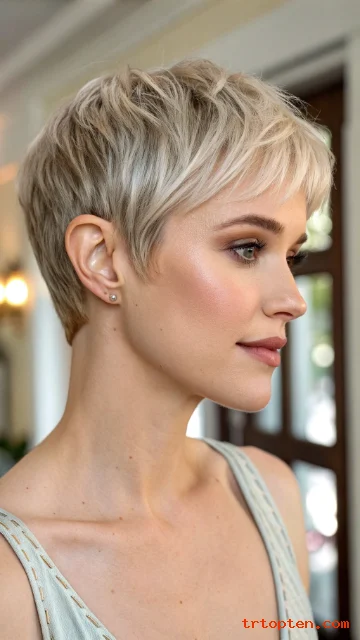 This style suits women who want a softer pixie that still looks current. It also pairs well with subtle waves for a relaxed vibe.