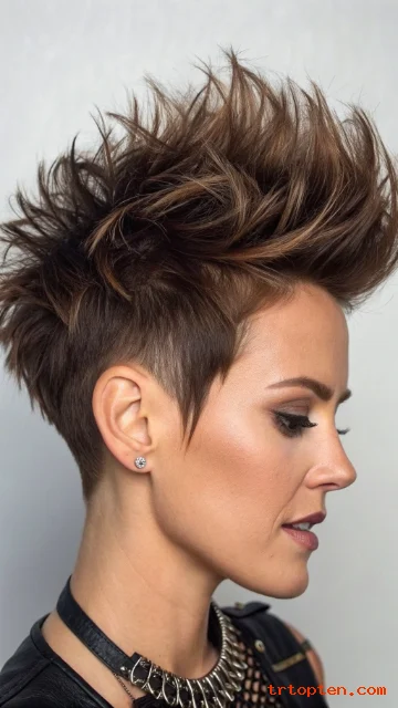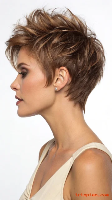 This pixie uses short layers that can stand up for a bold, playful look. The matte finish keeps the style edgy and modern.