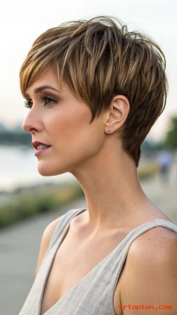 This style suits women who want a feminine pixie that still feels modern. It also looks great with highlights because layers show dimension.