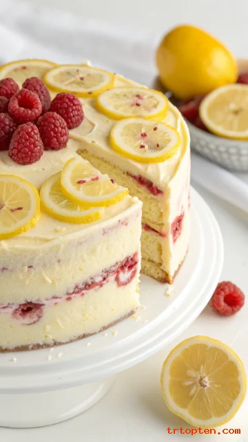 Bake lemon layers for a fresh flavor and fill with raspberry compote. Frost with lemon buttercream and add raspberries on top.
