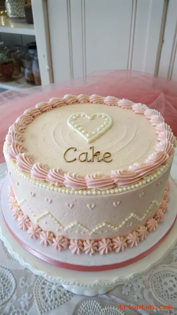 Bake vanilla layers and frost the cake in smooth pale pink buttercream. Pipe a vintage-style heart border around the top edge in a deeper pink.