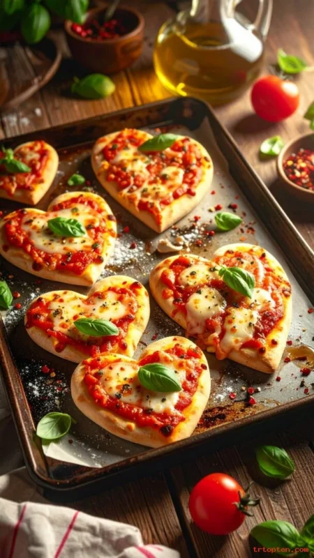 These mini pizzas feel playful and comforting. They work well for a casual Valentine’s night at home.