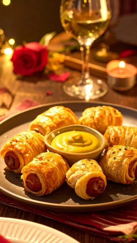 Sausage rolls feel hearty and cozy. They work well when you want a filling appetizer spread.