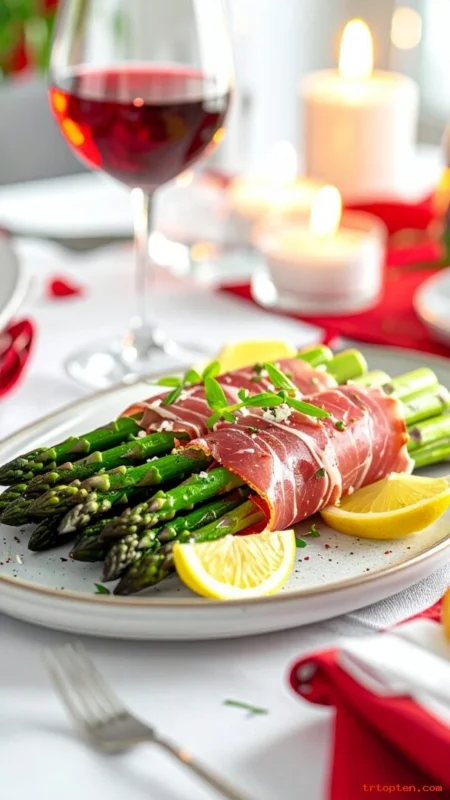 Wrap each asparagus spear with prosciutto and bake until the edges crisp. The salty meat and tender asparagus create a clean, bold bite.