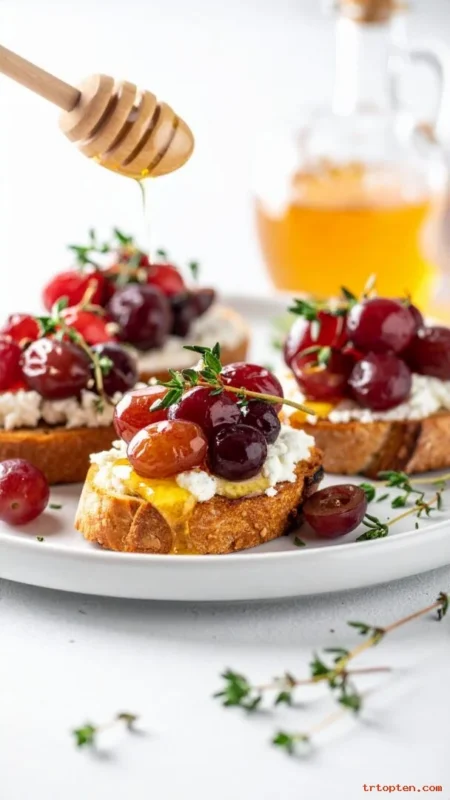 This appetizer feels unexpected and romantic. The sweet grapes balance the creamy ricotta perfectly.
