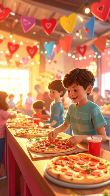 Add a short “pizza chef” demo for kids to watch. Offer a photo corner with heart props for families. Provide a calm space for parents with coffee and snacks.