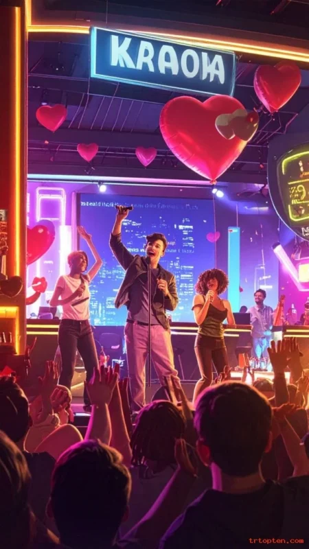 Add duet incentives like “best couple duet” or “best friend duet.” Provide props like heart glasses and boas for stage fun. Offer mocktails and easy snacks for singers.