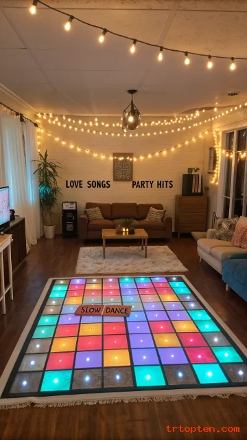 A dance floor brings high energy and keeps the party moving. It works even in a living room with a small setup.