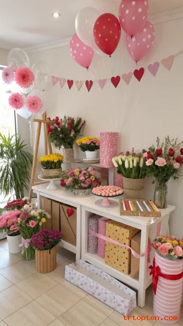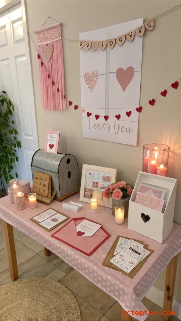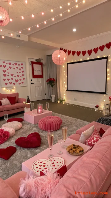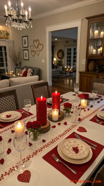 Use balloons, candles, and a simple table runner in red and pink. Add fresh flowers or heart-shaped accents for fast impact.