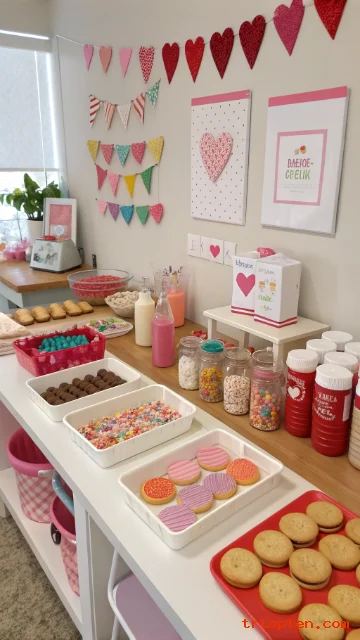 Bake heart cookies ahead of time and set out icing and sprinkles.