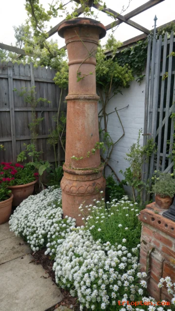 Place a terracotta chimney pot in a garden bed for height. The tall shape feels old and architectural. It pairs well with flowers and climbing plants.
