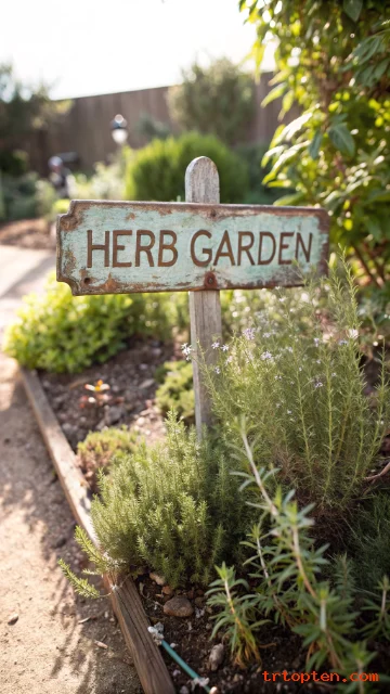 Add a vintage-style metal sign with a simple garden message. Place it near herbs, a potting bench, or a seating area. The sign adds personality without taking up space.
