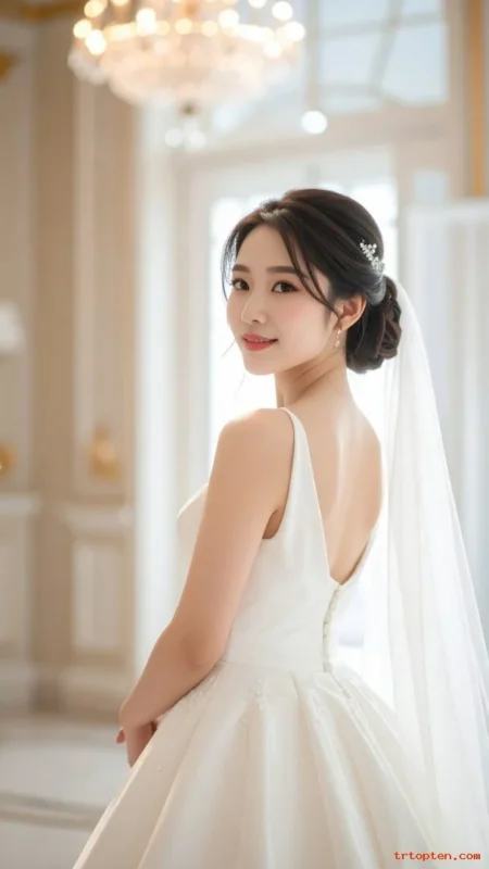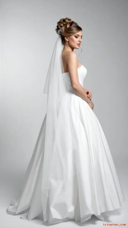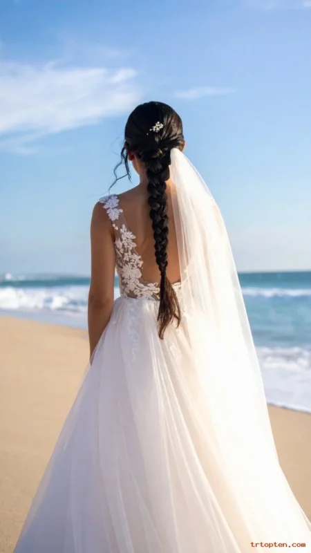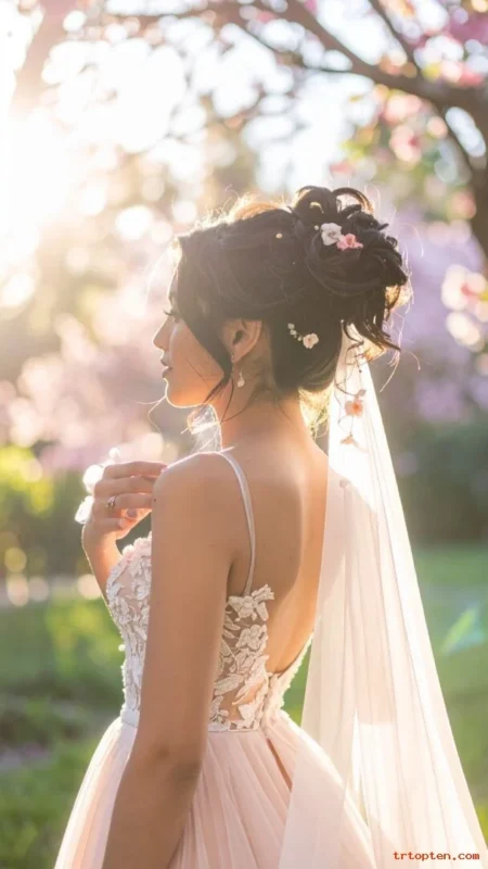 This style suits modern gowns and bold earrings. It also photographs well from every angle in bright daylight.