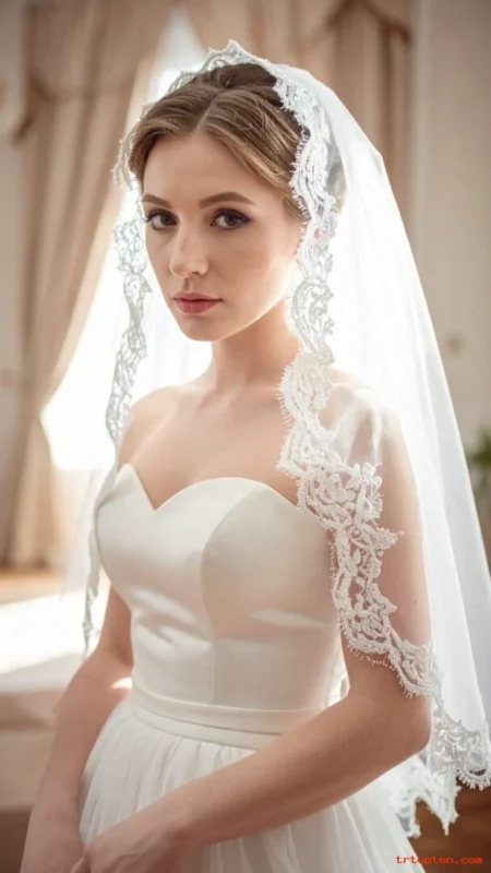 Sleek chignons, braided buns, and French twists show lace borders clearly. Keep the base neat so the lace detail stands out.