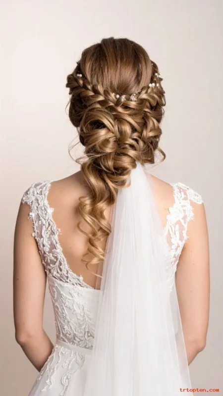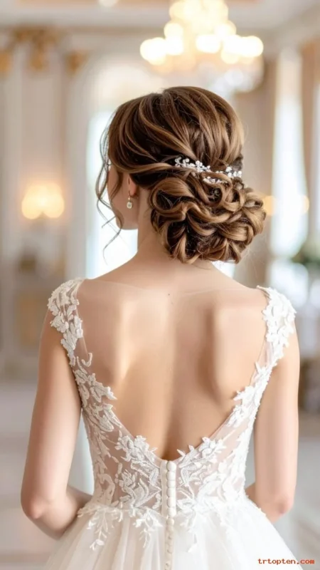 This style suits medium to long hair and looks great in photos from behind. It pairs well with romantic lace dresses.