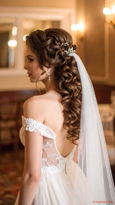 Side-Swept Curls With Shoulder Veil