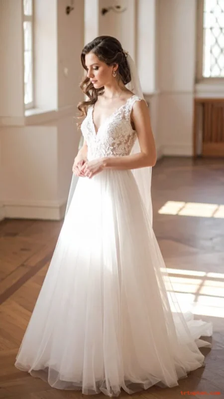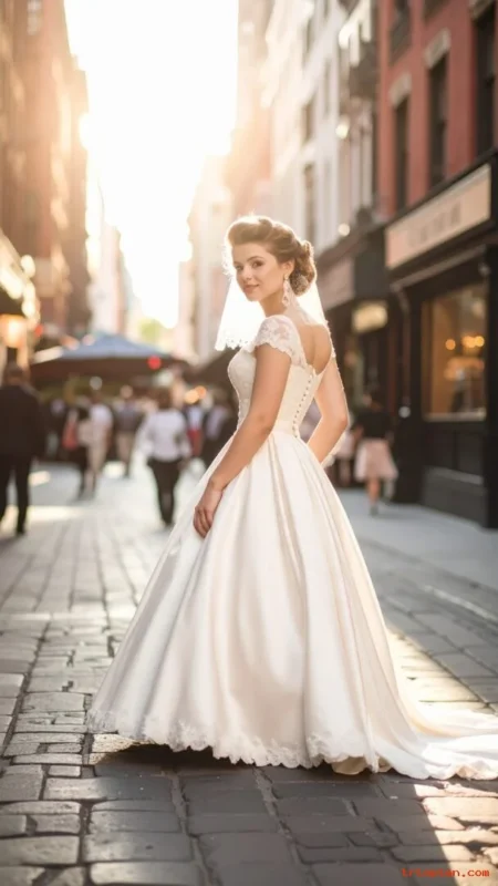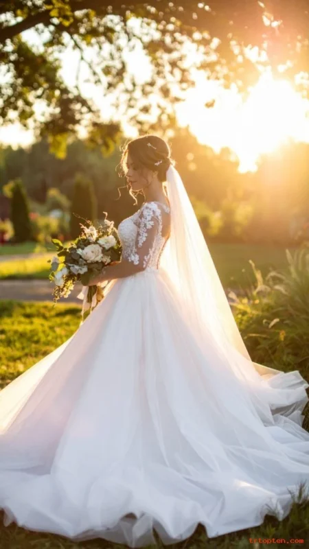 This style fits garden weddings and outdoor photos with breeze. It also works well with lace dresses and romantic sleeves.