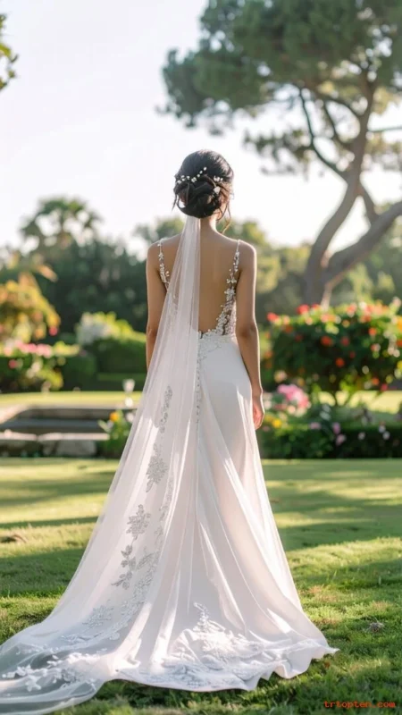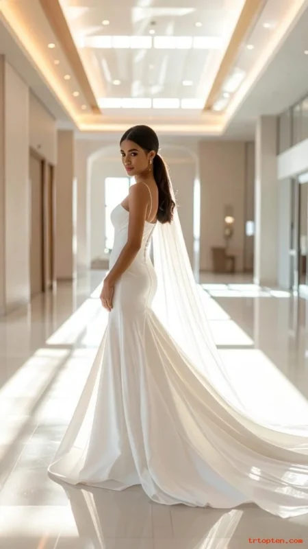 This style fits contemporary weddings and city venues. It looks great with square necklines and minimalist gowns.