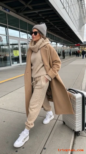 A knit co-ord set makes winter dressing fast and stylish. Matching knit top and knit pants create a soft, clean outfit base. A long coat adds warmth and a polished outer layer.