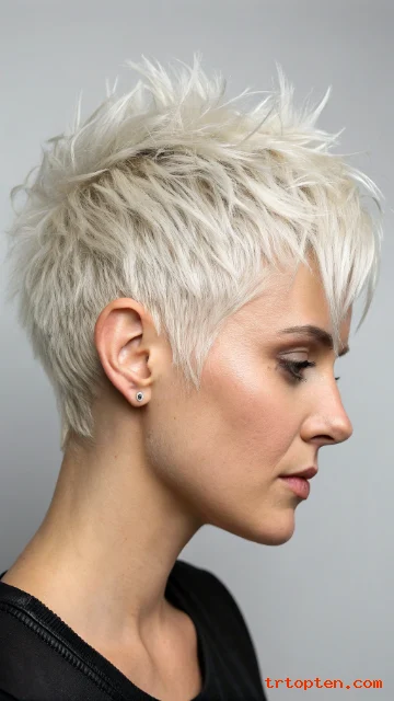 Platinum blonde gives the wolf cut a sharp, modern edge. The bright tone makes every layer visible. The texture looks bold and high impact.