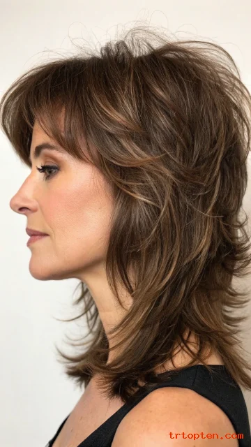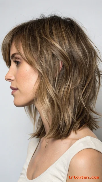 This classic medium wolf cut uses choppy layers and a lifted crown for easy volume. It keeps the ends wispy, so hair looks light and bouncy. Ask your stylist to keep the face layers blended for a natural finish.