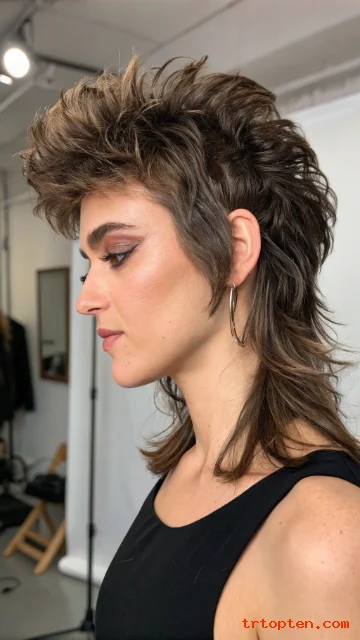 A tapered nape keeps the back neat while the top stays shaggy. The shape looks modern and clean from the side. It gives a subtle mullet feel without going too far.