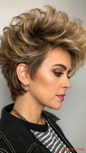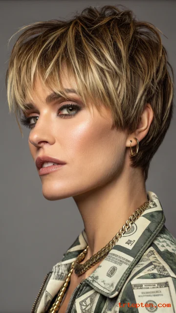 The short wolf cut bob mixes a bob base with shaggy texture on top. It creates volume at the crown and soft pieces around the face. The ends sit near the jaw or chin for a sharp outline.