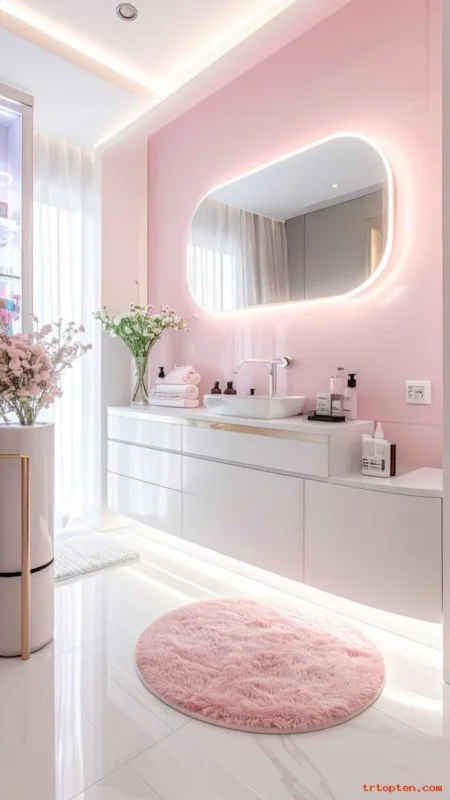 Choose a calming scent corner with candles, a diffuser, and a small tray. Keep towels and robes in a woven basket for an easy spa feel.