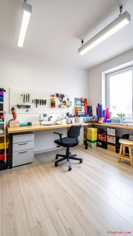 Install pegboards or wall rails to hang tools and keep them visible. Use clear bins for supplies so you see what you own and avoid duplicates.
