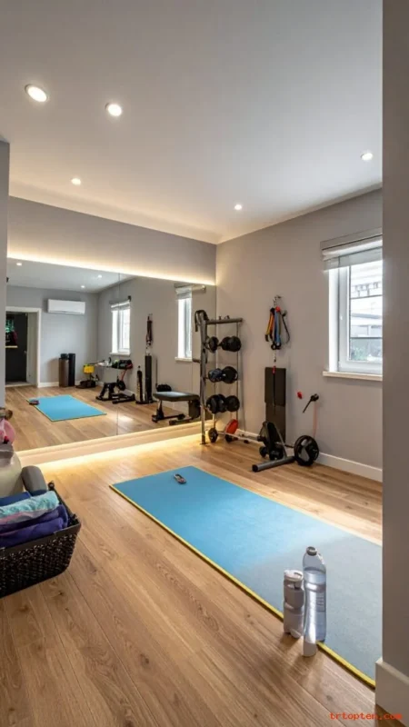 Add a small sound system and a fan for comfort during workouts. Store everything in one zone so you can start a session in seconds.