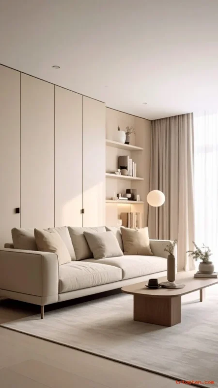 Use clean furniture lines and keep decor limited. Pick a neutral palette and add one accent color like soft blue or sage.