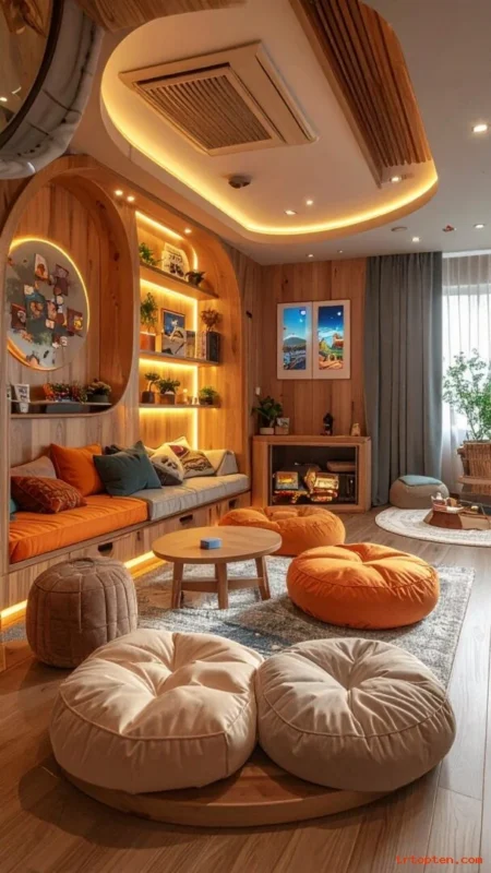 Add a low seating area with poufs or a floor cushion set. Use warm string lights or lanterns for cozy glow.